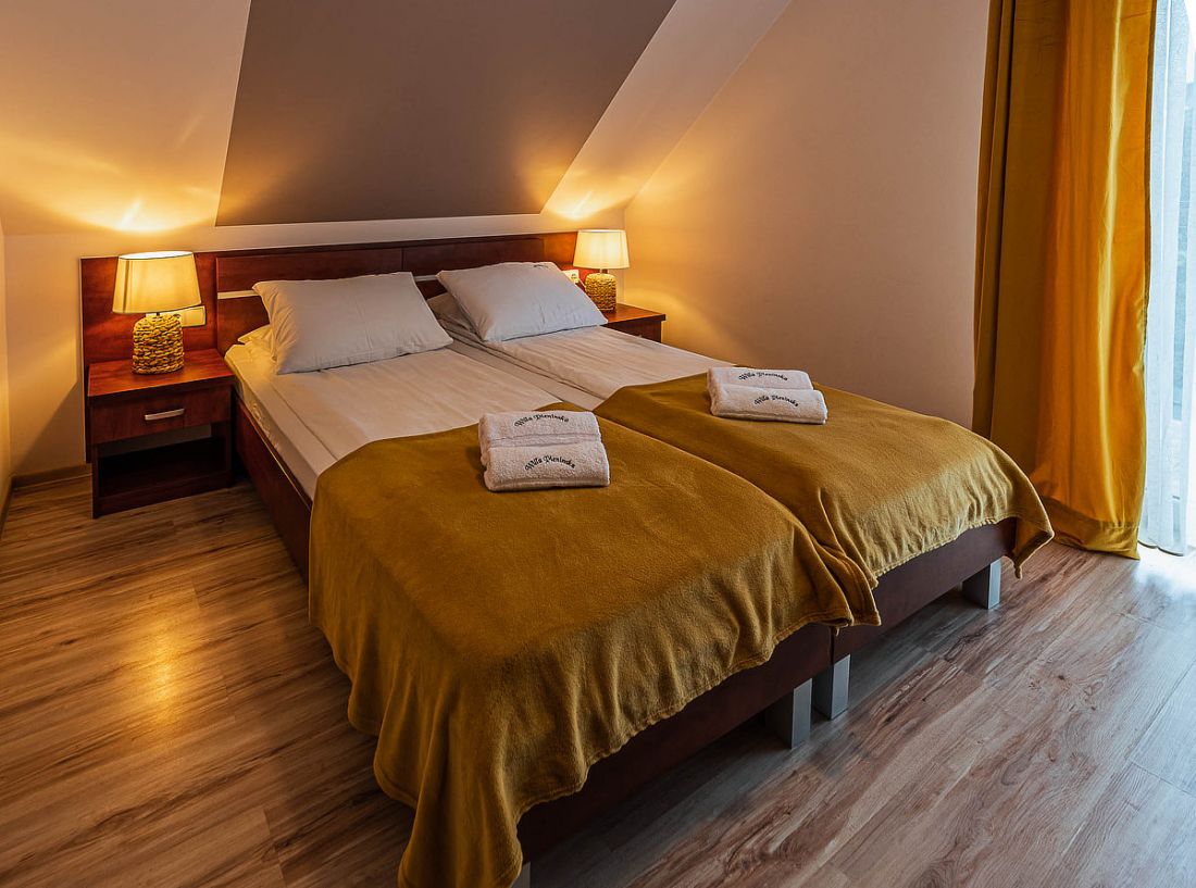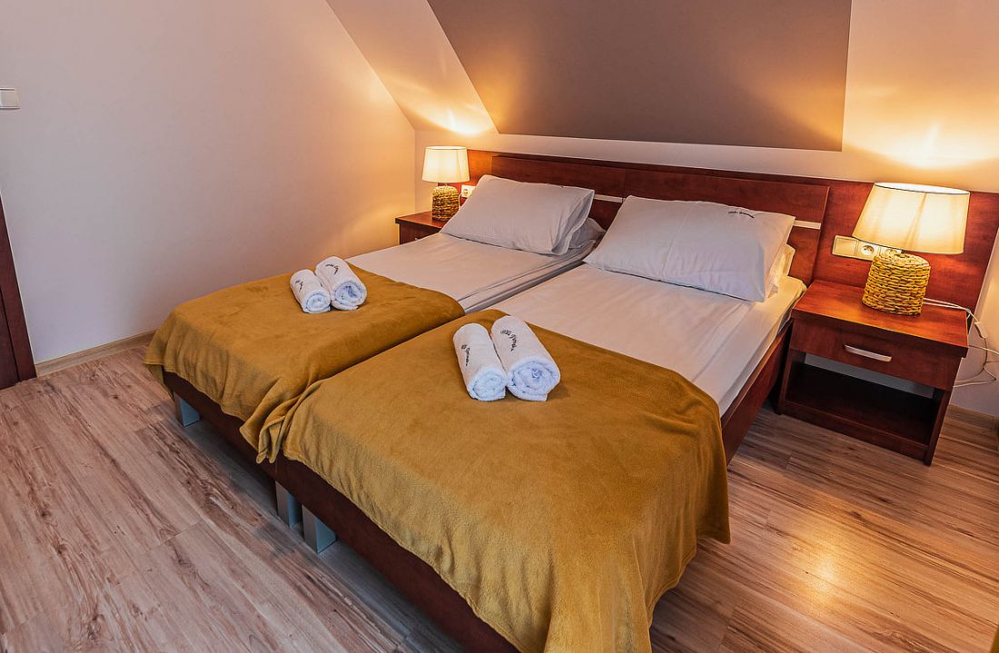 Posiadamy również apartamenty. Pokoje wyposażone są w TV SAT i bezprzewodowy dostęp do internetu.